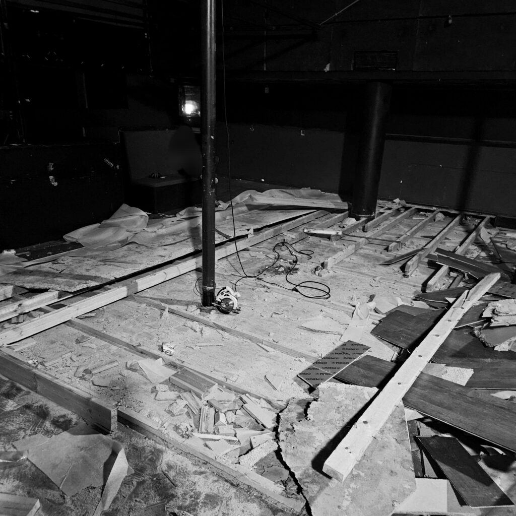 Suurin remontin kohde on korotettu lattia, joka on tarkoitus purkaa. Käytännössä työ on sorkkaraudalla laminaattien repimistä ja tukipuisen sahaamista. Lisäksi tarvitaan kantoapua purkujätteen ulos viemiseen.